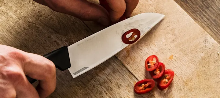 1. När du skrapar din färdigskurna mat från skärbrädan, använd knivens rygg istället för skärytan och undvik därigenom att kniven blir slö.