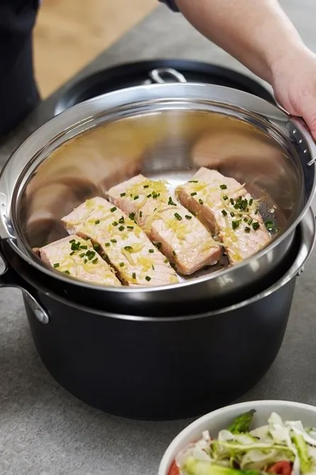 Tefal Experience 2in1 Gryta/Ångkokare har en slitstark non-stick beläggning som minimerar risken för att mat bränner fast och gör grytan enkel att rengöra. Grytan är perfekt för kokning av allt från pasta till soppa och med ångkokaren minskar du näringsförlusten när du ångkokar till exempel broccoli eller andra grönsaker.
