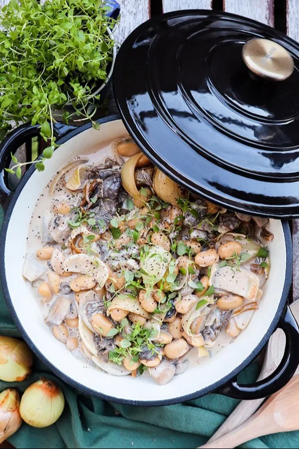 Nordwik Gjutjärnsgryta är, förutom knoppen som är gjord i rostfritt stål, helt tillverkad i gjutjärn och emalj vilket gör att den klarar höga temperaturer och kan användas på både spis och i ugn utan problem. Volymen på 5 L räcker också gott och väl för måltider till hela familjen.