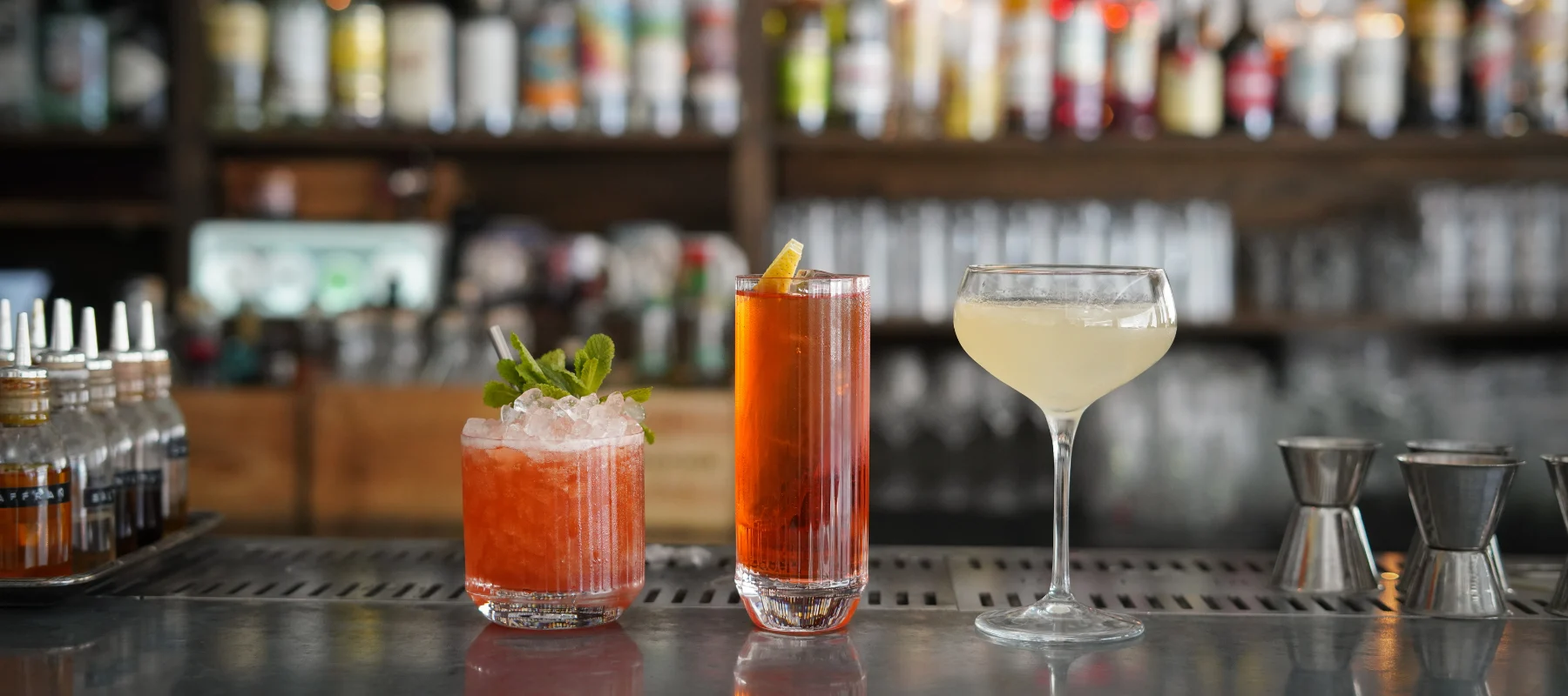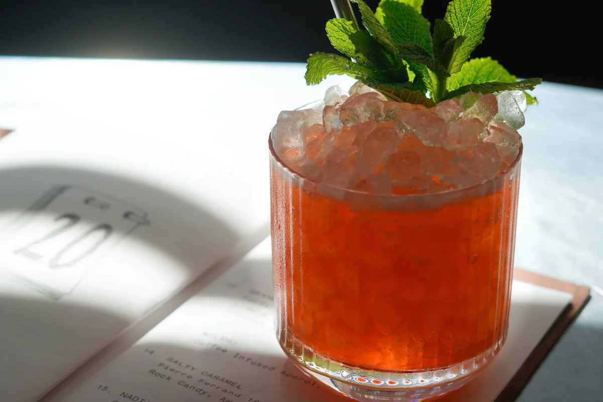 På Södermalm i Stockholm eller närmre bestämt Hornstull ligger Tjoget. Restaurangen med baren som blivit rankad på listan ”The World’s 50 best bars”, faktiskt också den första svenska baren som någonsin kommit med på listan. Sommaren 2022 tog Tjoget även hem priset som Bartendrarnas Bar i Svenska Gastronomipriset. Mitt i den industriellt inredda restaurangen finner vi Hedda vid en massiv bardisk iklädd i Zink. Hedda är en av Tjogets fantastiska bartenders och inte nog med det så är hon även utsedd till Sveriges bästa bartender 2021 vid Bartender Choice Awards och har även vunnit priset som Bartendrarnas Bartender vid Svenska Gastronomipriset 2022. Tjoget tar sin inspiration både till mat & dryck från länderna kring medelhavet. Vi finner spår av medelhavet både på matmenyn men också i drinkarna i form av kryddiga spritsorter och andra ingredienser.