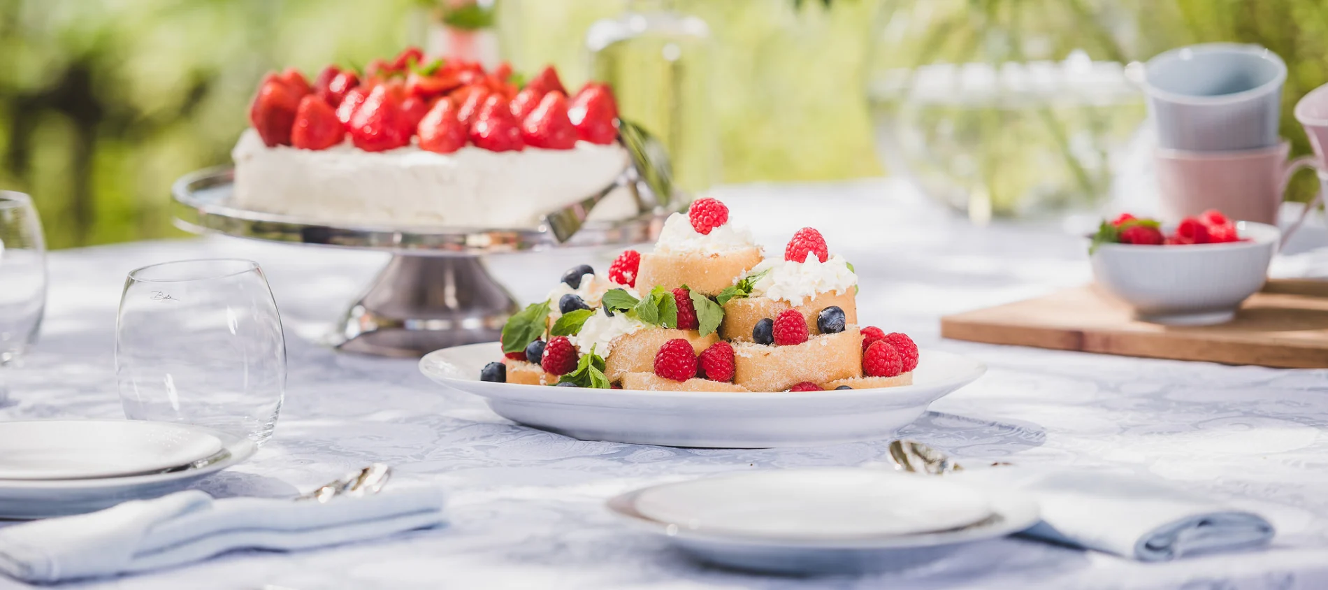 Efter det härliga midsommarbordet är det dags för den efterlängtade efterrätten! Vi trånar efter en smakrik moussetårta med bärsmak, eller varför inte den klassiska midsommartårtan med jordgubbar? Oavsett behöver tårtan serveras på ett vackert fat tillsammans med tårtbestick, vi har något som passar alla i vårt breda sortiment. Upptäck bland annat somriga Mon Amie och eller färggranna Miss Etoile.