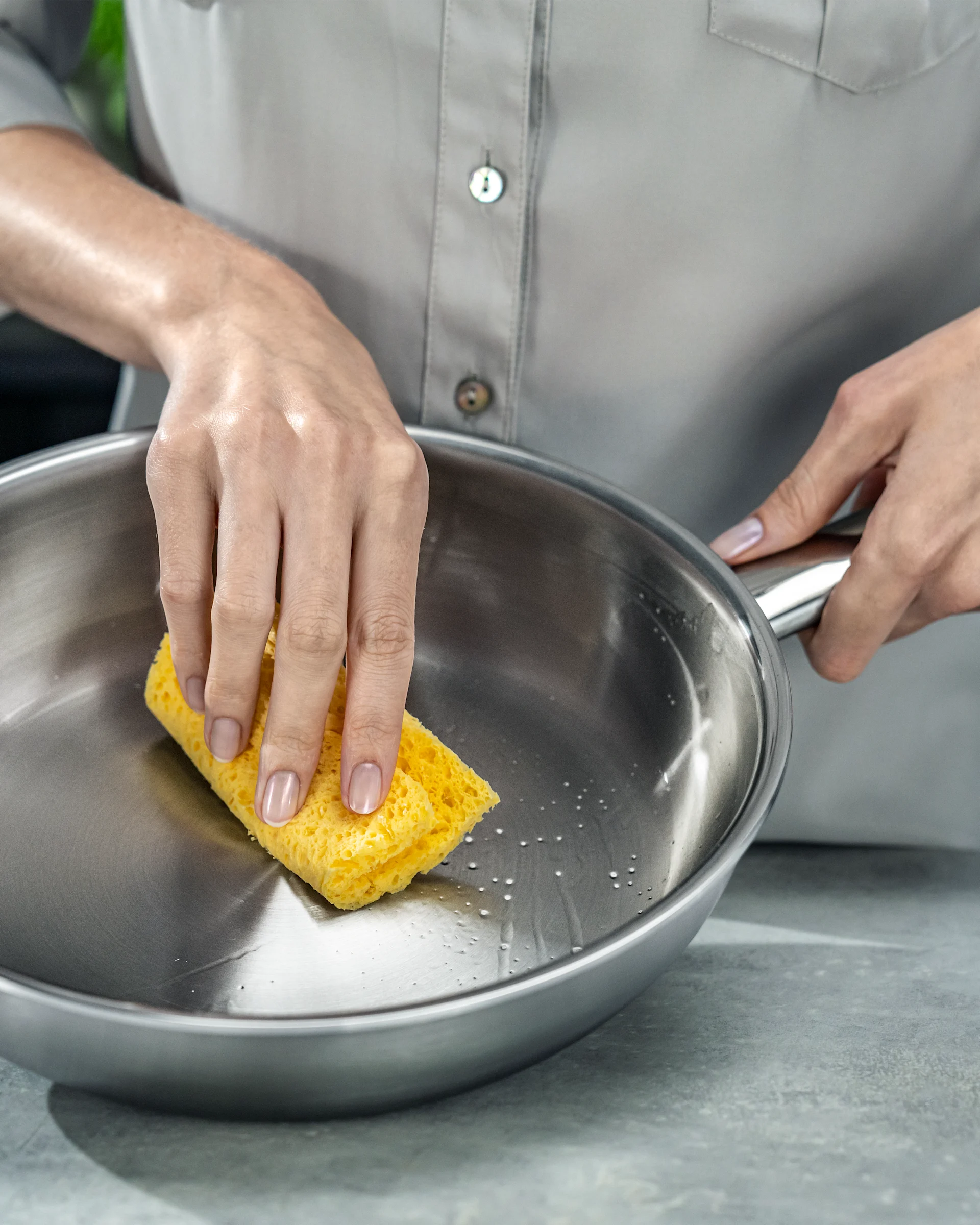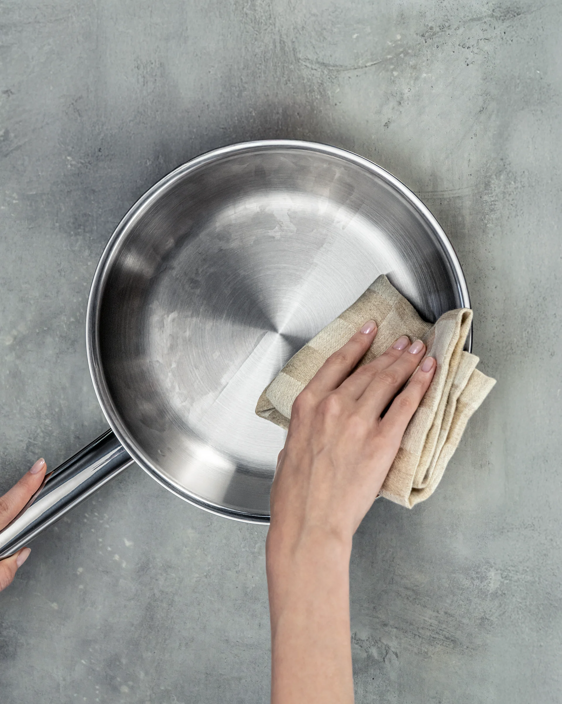 Rostfritt stål är slitstarkt och fritt från beläggningar som kan slitas ner. Rengöringen är enkel – pannan tål både hand- & maskindisk, men för att bevara finish och förlänga livslängd är handdisk att föredra.