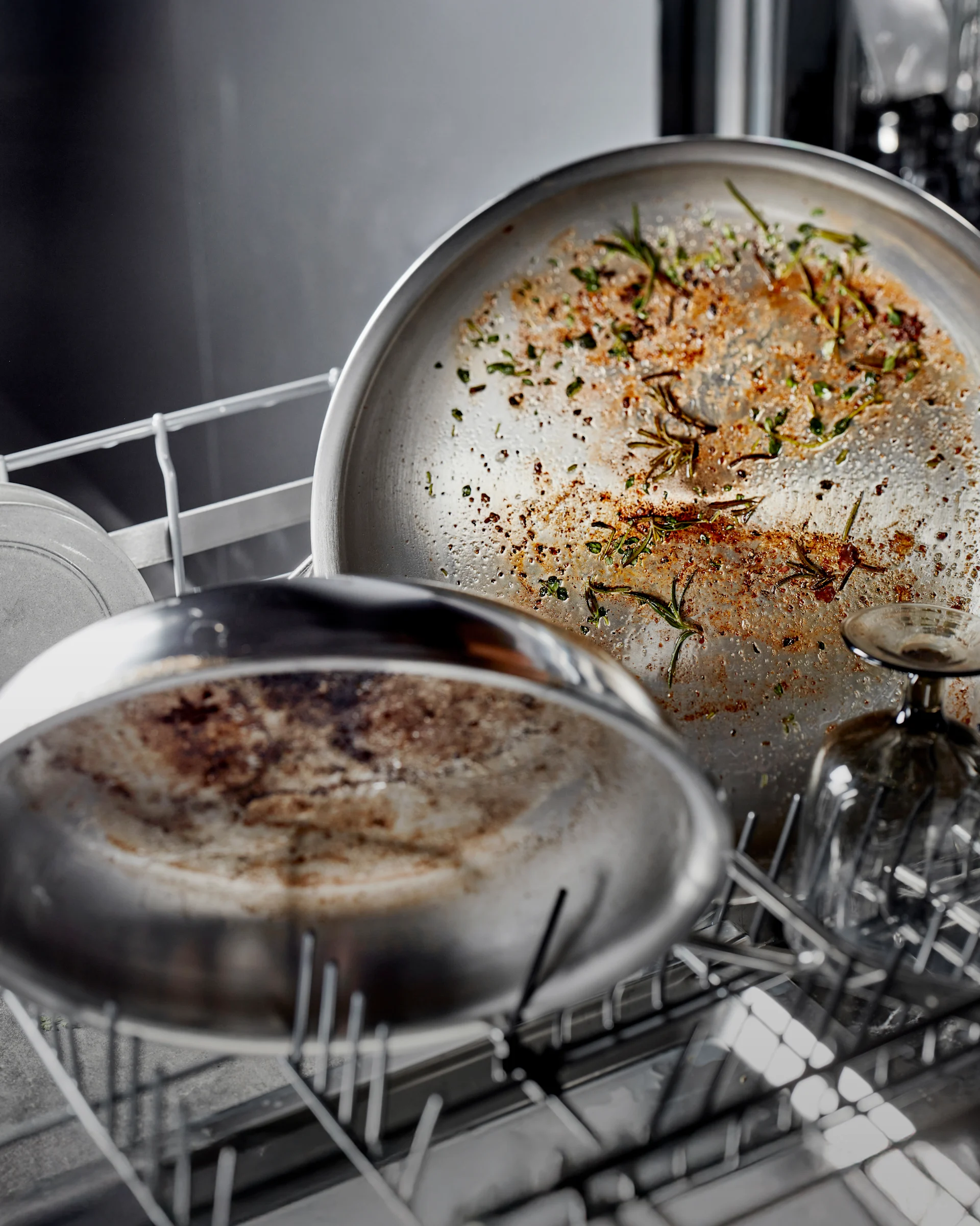 Rostfria pannor kan få regnbågsskiftningar eller fläckar efter hög värme – helt naturligt och ofarligt. Vill du få bort dem kan du: