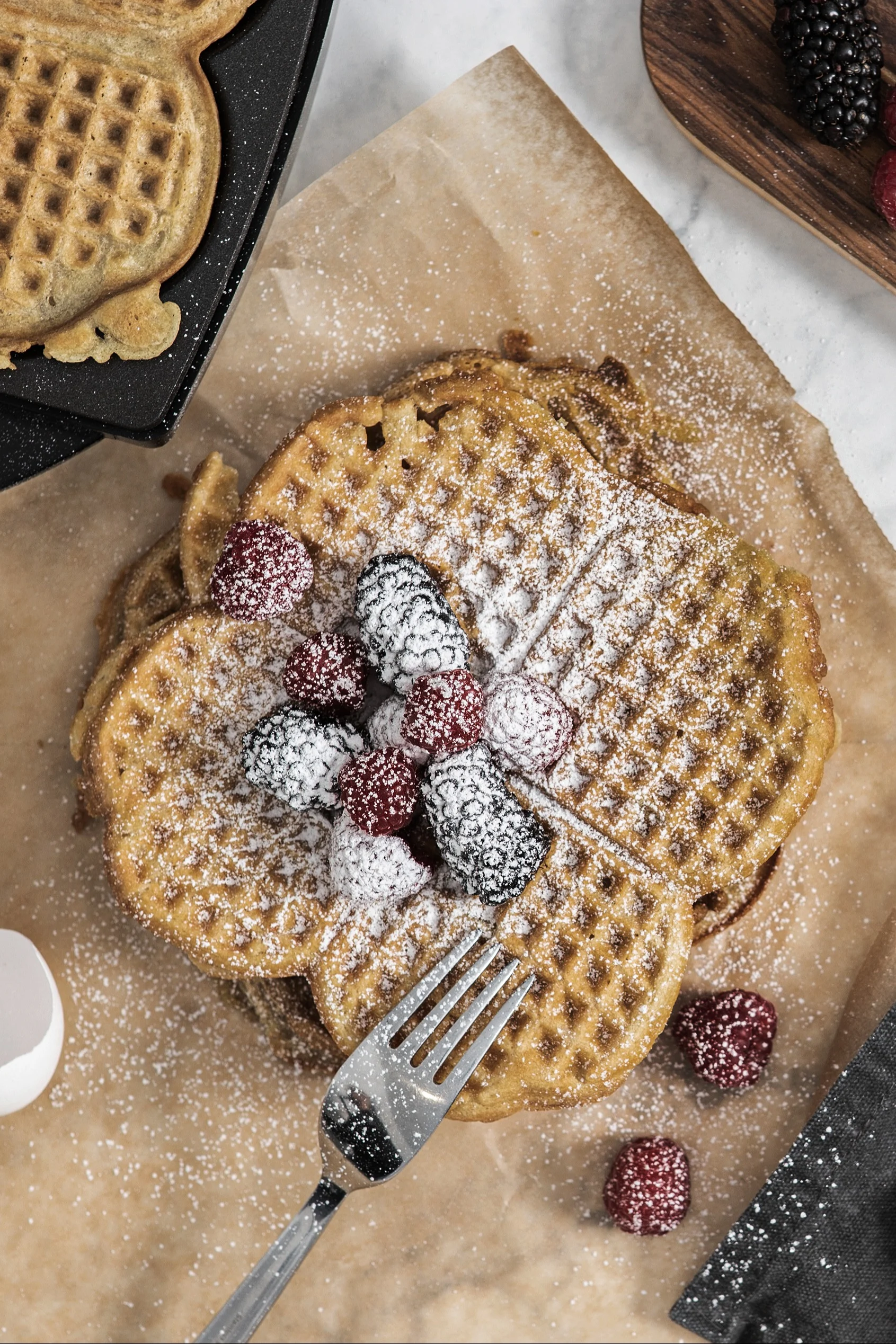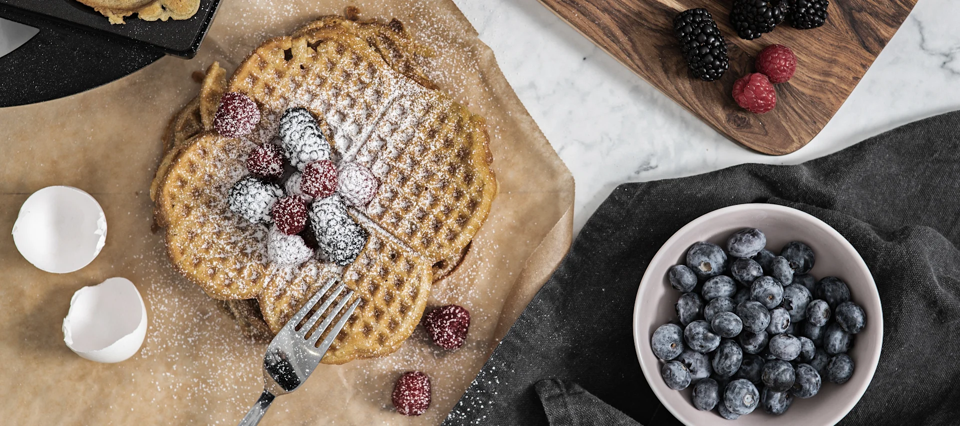 Vill du ha mer inspiration? Scrolla ner för att komma till våra tre recept på hur du gör utsökta skagenvåfflor, veganska våfflor med gurkmeja och sist men inte minst - ett enkelt recept på riktigt goda och klassiska frasvåfflor!