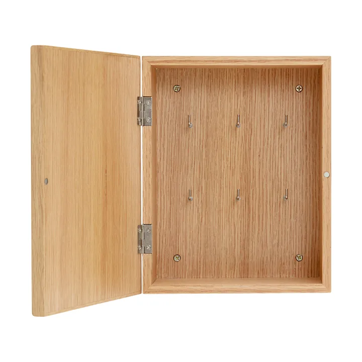 Andersen nyckelskåp 20x9,5x25 cm från Andersen Furniture är tillverkat av ek och erbjuder en praktisk förvaring för nycklar och andra småsaker. Nyckelskåpet har enkla, rena linjer som ger det ett klassiskt uttryck. Skåpet är utrustat med en diskret magnetlås och sex inbyggda krokar för enkel förvaring. Den vitpigmenterade ytan ger träet en vacker finish och fungerar även smutsavvisande. Nyckelskåpet är designat av Louise Siig Nielsen.