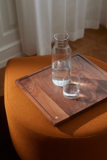 Sessio bricka 34x40 cm från AYTM förenar funktion och design med sin eleganta form i FSC®-certifierad valnöt. Perfekt som serveringsbricka eller för att visa upp dekorativa föremål. Med naturliga variationer i träets färg och ådring får varje bricka en unik karaktär. Aluminiumdetaljerna tillför en lyxig känsla.