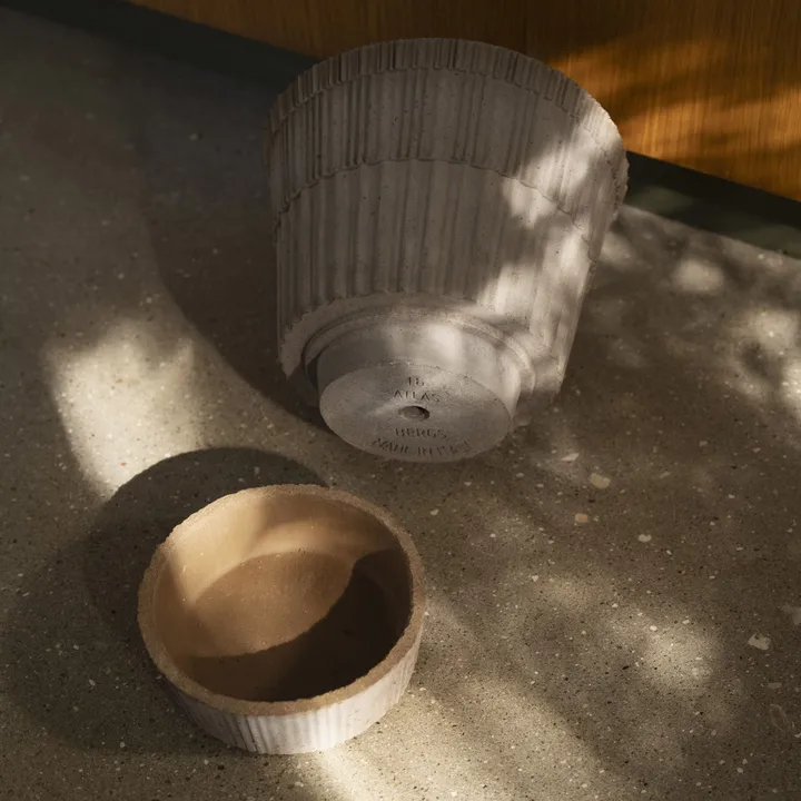 Atlas raw kruka från Bergs Potter är en robust och stilfull kruka tillverkad i 100% terrakotta. Inspirerad av den mytologiska titanen Atlas, pryds denna terrakottakruka av cirkulära mönster med vertikala linjer som symboliserar styrka och stabilitet. Den medföljande fatet kompletterar designen perfekt, och variationerna i terrakottan gör varje kruka unik.