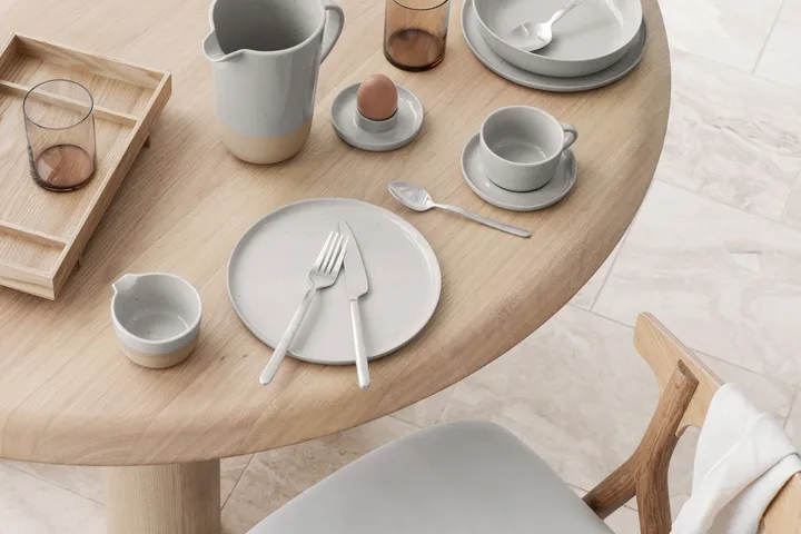 Sablo kanna 1 liter från Blomus är en kanna i stengods med en hällvänlig pip och ett greppvänligt handtag där nedre delen av kannan är matt och den övre är blank. Tack vare tillverkningsprocessen får varje exemplar ett unikt utseende med effektfulla prickar. Kannan är designad av Fredrike Martens och kombineras gärna med övriga delar i Sablo-serien för en enhetlig dukning.