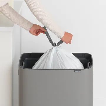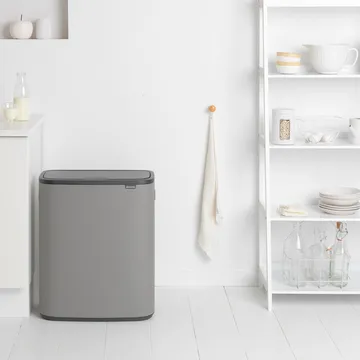 Bo touch bin 60 L från Brabantia kommer med mjukt stängande lock och en innerhink på hela 60 liter för att göra det enklare att hålla ditt hem fritt från skräp och dålig lukt. Den har en stilren och enkel design och kan ställas direkt mot väggen tack vare den platta baksidan.