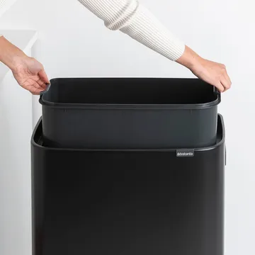 Bo touch bin high 60 L från Brabantia är den bästa investeringen för ett rent och hygieniskt hem. Den är utrustad med en innerhink som rymmer hela 60 liter och tack vare det mjukt stängande locket sprids inga otrevliga odörer ut i hemmet. Öppningen är stor, vilket gör hanteringen av sopor ännu enklare.