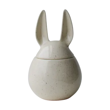 DBKD Eating rabbit skål liten är tillverkad av keramik och kan användas både som förvaringsburk för småprylar och som serveringsskål för påskgodis. Tack vare det smarta och söta locket håller sig godiset fräscht längre. Den mjuka och minimalistiska silhuetten med två kaninöron är en modern tolkning av den klassiska påskharen och blir en charmig dekoration på bordet eller fönsterbrädan under påsk.