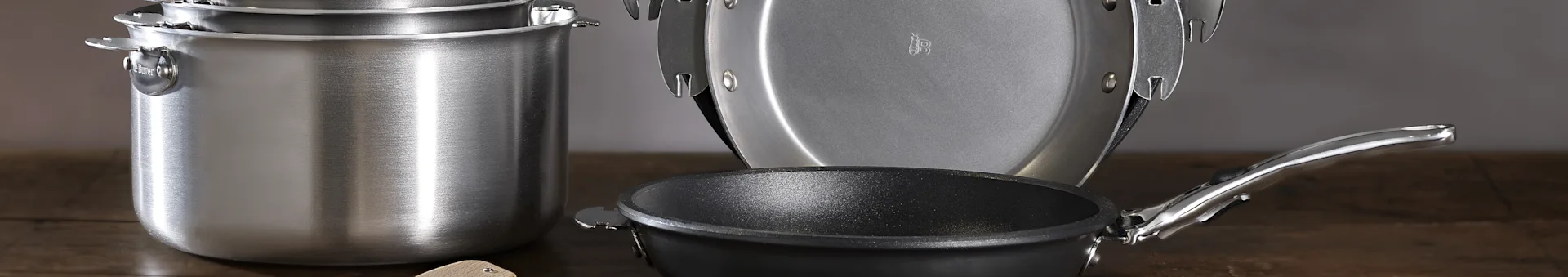 är gjord i värmebehandlat stål som därför blivit blåfärgat och glänsande och passar extra bra för traditionell matlagning. Pannorna är mycket tåliga och passar bra för matlagning på medelhög värme. Pannorna kan användas på alla typer av värmekällor inklusive induktion.de Buyers serie Milady är gjord i högkvalitativt AISI 304 rostfritt stål och har sandwich-botten, vilket innebär att produkterna har en aluminiumkärna som gör att värmefördelningen blir jämn och snabb. Kastrullerna och pannorna kan användas på alla värmekällor inklusive induktion, och kan dessutom diskas i maskin. Handtagen är ergonomiskt utformade med bekväma urgröpningar för fingrarna.Den kanske mest populära serien från de Buyer är den högkvalitativa