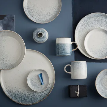 Kiln blue ridged mugg från Denby är en handgjord mugg i 100% stengods, där varje exemplar har sitt eget unika uttryck. Perfekt för kaffe, te eller till och med en värmande soppa. Den vackert glasade ytan ger en taktil upplevelse och gör varje dryckesstund speciell.