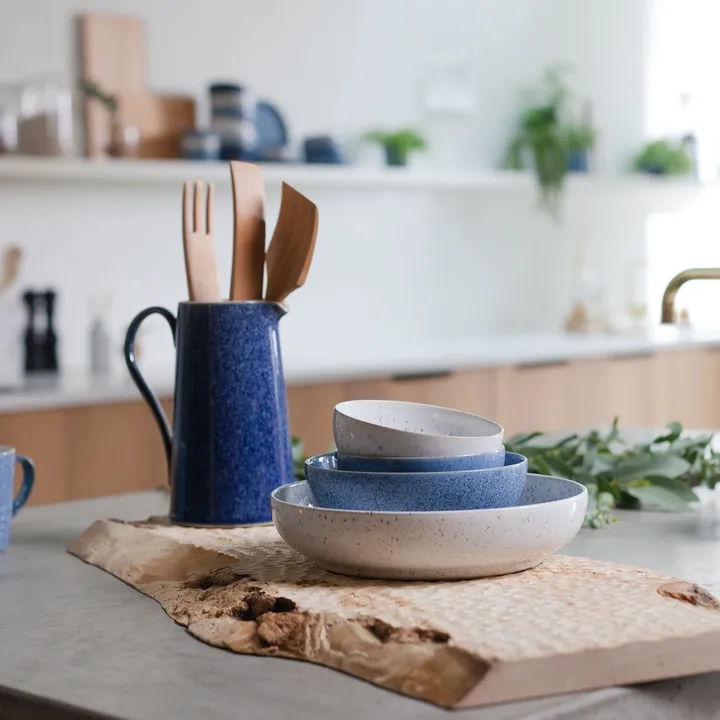 Studio Blue skål 24 cm är handtillverkad vid Denby Pottery i England och bjuder på en rustik design med härlig textur. Hela stengodsserien är inspirerad av naturliga mineraler vilket märks i den vackert melerade glasyren. Skålens vida form och höga kanter gör den perfekt för servering av krämiga pastarätter, grytor och gratänger.
