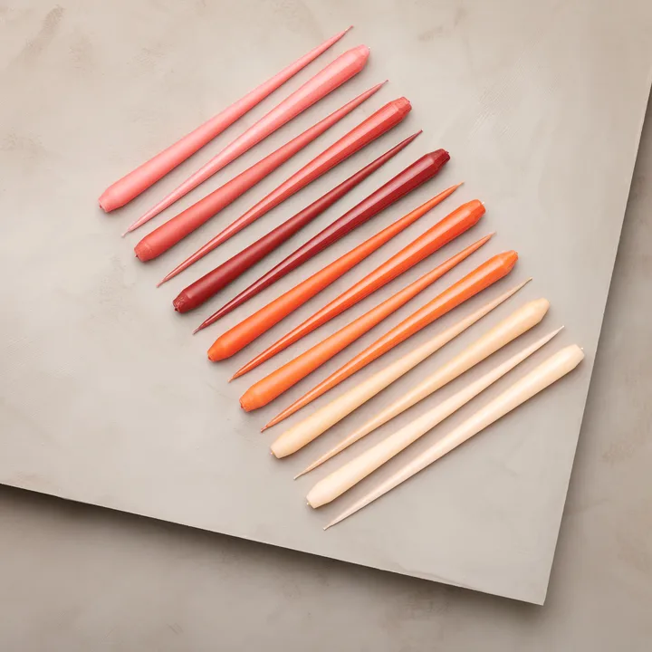 Svarta ljus från det danska varumärket Estrik & Erik. Ljusen passar när du vill ge din neutrala dukning en mer dramatisk look med hjälp av mörkare detaljer. Ljusen är handstöpta med en elegant avsmalnande form upptill. Nederdelen är konformad för att passa de flesta ljusstakar - höga som låga. Finns med matt eller lackad finish.