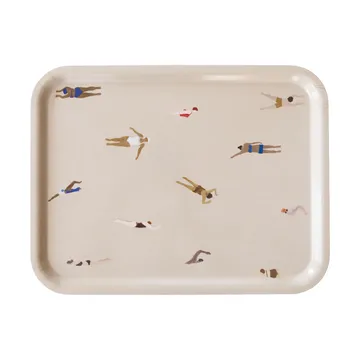 Swimmers bricka 33x43 cm från Fine Little Day är en rymlig bricka i laminerad björk med ett lekfullt motiv av Elisabeth Dunker. Den tål vardagens bruk och gör sig lika bra till frukost och fika som till att samla kryddor och oljor på köksbänken. Den tåliga ytan är lätt att torka av, och den ikoniska originalteckningen i kladdkrita och akryl ger varje servering en glad och konstnärlig känsla. FSC-märkningen visar att brickan är tillverkad med omtanke om natur och socialt ansvar — ett fint val för hemmet.