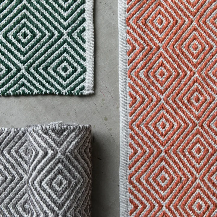 Med Diamond matta 200x300 cm från Formgatan får du inte bara en väldesignad matta, den är även tillverkad av garn från återvunna PET-flaskor. Tack vare materialet kan mattan användas i flera rum, från köket till hallen och även utomhus. Garnet är slitstarkt, mjukt och absorberar inte vätska på samma sätt som bomull.