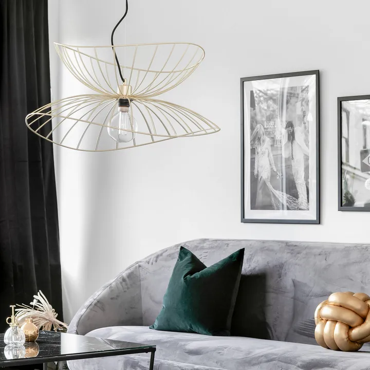 Ray taklampa Ø 70 cm från Globen Lighting ger dig möjlighet att själv bestämma hur taklampans design ska se ut. Välj mellan att placera de snäckformade lampdelarna mot eller inuti varandra, oavsett vad du väljer får du ett vackert och iögonfallande resultat. Genom att placera delarna inuti varandra blir pendeln en aning mindre och får ett mer dämpat ljus. Som med Patrick Halls övriga kreationer är Ray en perfekt kombination av minimalism och sensualitet. Produkten gör sig bra i både stilrena och rustika hem med sin mjuka form.