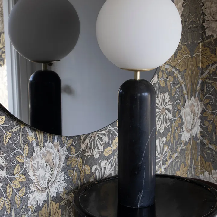 Torrano bordslampa är designad av Patrick Hall för Globen Lighting och har en exklusiv look med en stor, sfärisk glaskupa och en hög, solid marmorbas. En oerhört stilfull lampa som drar blickarna till sig oavsett var du ställer den. Låt den sprida ett välkomnande sken från hallbyrån eller pryda sin plats på sidobordet i vardagsrummet.
