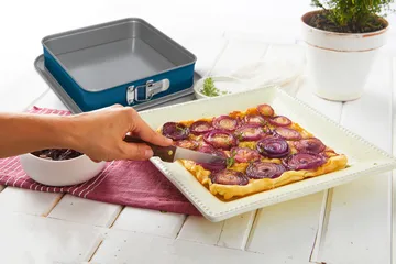 Xbake springform från Guardini är en smart bakform med två bottnar som ger maximal flexibilitet i köket. Den löstagbara mittkonsbottnen gör det enkelt att baka saftiga ringkakor, medan den plana bottnen passar klassiska tårtor och cheesecakes. Formen har effektiv non-stick som släpper kakan lätt och underlättar rengöring. Stabil konstruktion ger jämn gräddning och fina kanter. Perfekt för allt från vardagsfika till festliga desserter i hemmet. Xbake springform blir snabbt din mångsidiga favorit för kreativa recept och platsbesparande bakning.