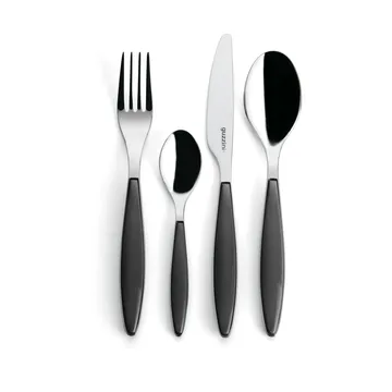 Feeling bestickset från Guzzini är ett 24-delars set för 6 personer med tidlös form och skön balans i handen. Designen signerad Robin Levien kombinerar 18/10 rostfritt stål med ett ergonomiskt handtag i hållbar plast som ger behagligt grepp vid vardag och fest. Kniven har stål anpassat för vass egg, samtliga delar är diskmaskinssäkra och tillverkade i Italien för hög kvalitet. Setet levereras i presentförpackning och blir ett praktiskt och elegant tillskott till dukningen i kök och matsal. Passar lika bra till vardagsrätter som till helgens bjudningar.