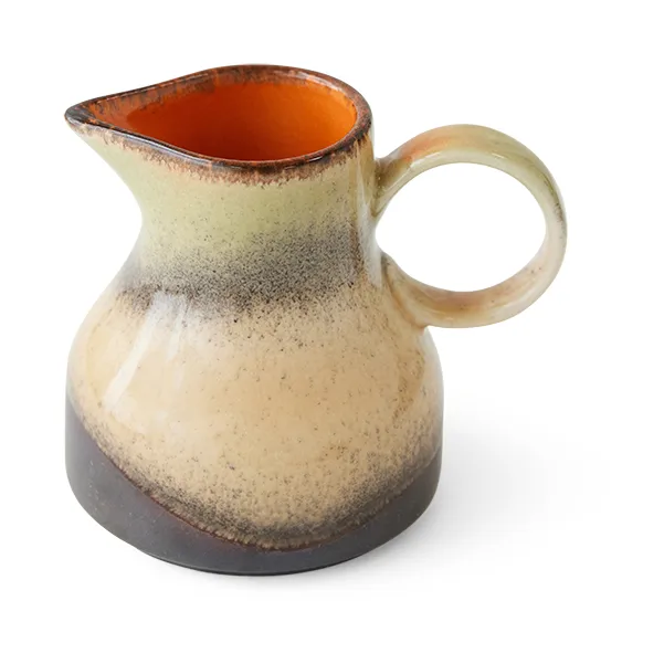 70's mjölkkanna från HKliving är tillverkad i slitstarkt stengods. Denna del av 70-talets kaffeserie är en färgstark hyllning till kaffekulturen. Med sin unika silhuett och jordnära färgpalett skapar mjölkannan en visuell fest på ditt bord, samtidigt som den bjuder in till nostalgiska kaffestunder. Perfekt för att servera mjölk till morgonkaffet eller till gästernas café au lait efter middagen.