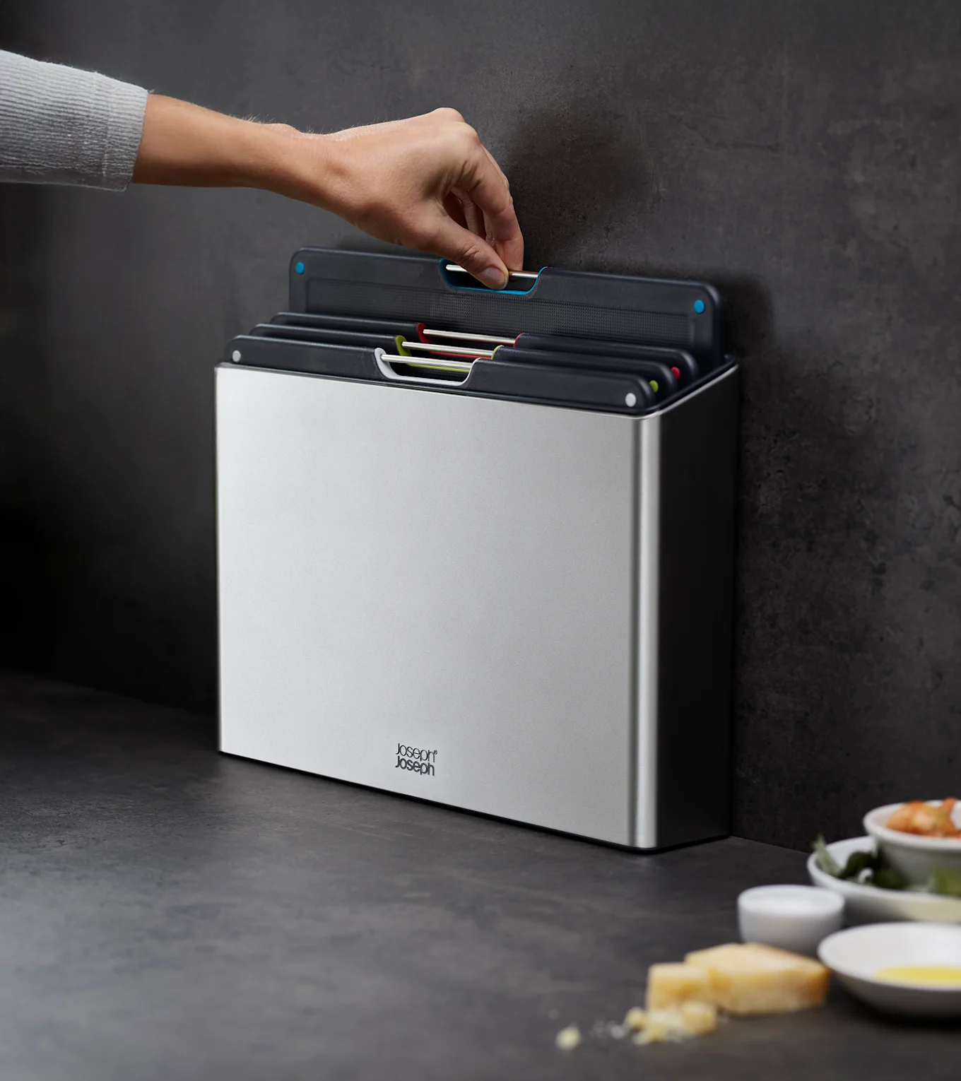 Joseph Josephs kollektion började smått med endast ett fåtal köksprodukter, bland dessa var det en produkt som stack ut lite extra, en enkel skärbräda i glas. Skärbrädans funktionalitet och hygieniska karaktär skapade brödernas fokus på att designa vardagsprodukter som löser problem. Därefter såg bröderna möjligheten att utforma nya lösningar och prestationsförbättringar på flera olika köksprodukter. Joseph Joseph-teamet delar alla samma engagemang och intresse för innovation och att skapa problemlösande produkter till hushåll runt om i hela världen.