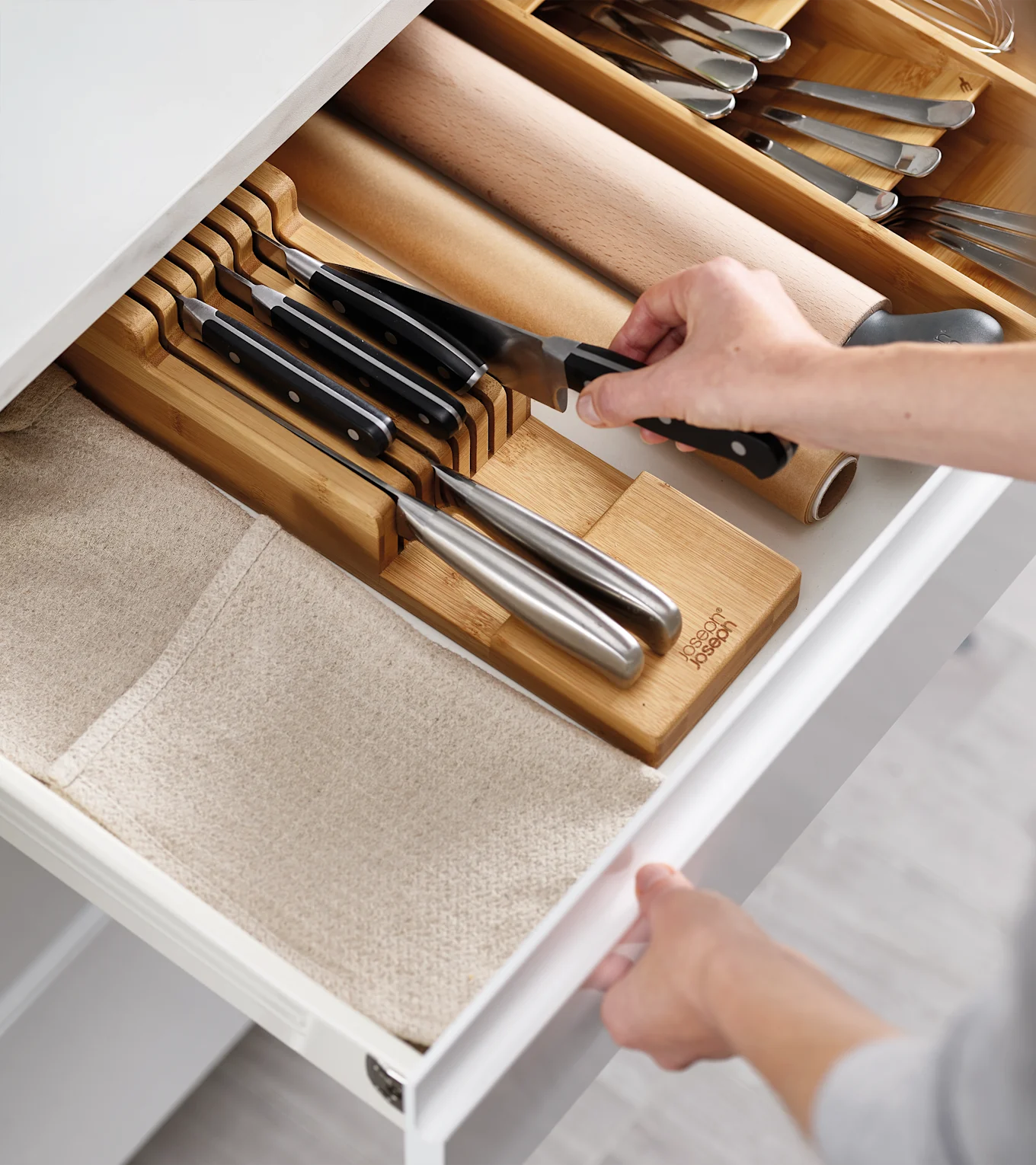Idag innefattar Joseph Joseph sortimentet förutom funktionella och innovativa köksredskap även smarta och snygga produkter inom rengöring samt produkter för matförvaring med fokus på platsbesparing och smart design. Joseph Josephs produkter är snygga att kombinera i olika färger och gör ditt arbete i köket både enklare och roligare!