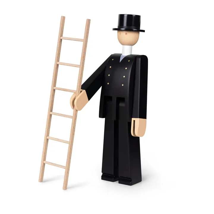 Kay Bojesen sotare från Kay Bojesen Denmark är en tidlös träfigur ur Figurines-kollektionen, formgiven av Kay Bojesen. Tillverkad i FSC‑certifierat bokträ och handmålad med omsorg, fångar sotaren lekfullhet och värme med sina blanka knappar, vita halsduk och ikoniska cylinderhatt. Den raka, stolta hållningen ger en berättande karaktär som lockar fantasin — perfekt på en hylla, i ett fönster eller som gåva till någon som uppskattar hantverk och design med själ. En charmfull detalj som skapar glädje i hemmet.