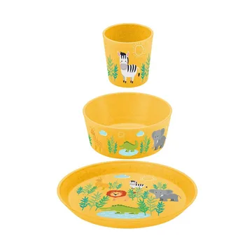 Connect barnservis 3 delar från Koziol är en lekfull och hållbar barnservis i Connect-kollektionen, formgiven för att göra måltiderna roligare. Setet innehåller tallrik, skål och mugg med det charmiga Bondgårdsmönstret som väcker fantasin och skapar glädje runt matbordet. Tillverkad av biocirkulära termoplaster och träfiber, helt i återvunnet material och fri från tillsatser – ett tryggt val för både barn och miljö. Servisen är stabil, lätt att rengöra i diskmaskin och designad för vardaglig användning som gör varje måltid till en fest.