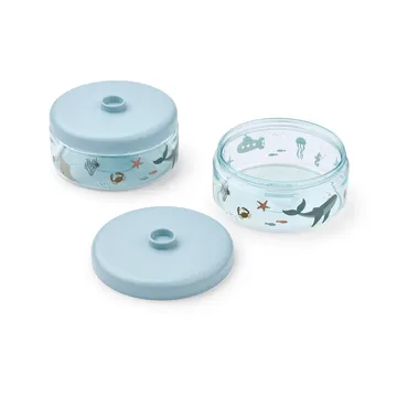 Dominique barnmatsburkar 500 ml 2-pack från Liewood är smarta förvaringsburkar för barnmat, mellanmål och rester hemma eller på språng. Varje burk rymmer 500 ml och har en säker, läckageskyddad förslutning som är enkel att öppna och stänga. Burkarna kan staplas och låsas ihop för platsbesparande förvaring i kyl och frys, och de är diskmaskinssäkra för enkel rengöring. Vid infrysning, fyll upp till 450 ml för bästa resultat. Perfekta matlådor för att förbereda portioner och hålla ordning i köket.