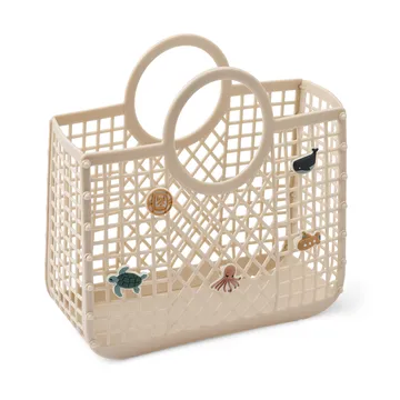 Samantha korg med berlocker från Liewood är en lekfull och lätt korg som samlar barnens favoritsaker på ett överskådligt sätt. Korgen tillverkas av 60 % återvunnet PE och har böjliga egenskaper som gör den tålig och smidig att bära. De medföljande berlockerna i roliga former kan flyttas om och gör förvaringen personlig. Konstruktionen är enkel att montera och ta isär, perfekt för växande behov. Använd den hemma för leksaker och böcker eller ta med på utflykter och små äventyr. En smart lösning som uppmuntrar till ordning och fantasi.