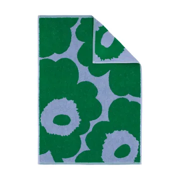 Unikko handduk 50x70 cm från Marimekko är en mjuk, präglad handduk i ekologisk bomullsfrotté formgiven av Maija Isola. Den har en jämn baksida och det klassiska Unikko-mönstret som ger badrummet en levande, glad känsla. Frottén absorberar väl och känns skön mot huden, perfekt efter dusch eller bad. En tidlös handduk som bär både historia och funktion — lika fin på handdukshyllan som hängande i badrummet.