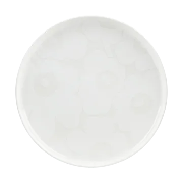 Unikko tallrik Ø25 cm från Marimekko är en klassisk och livfull tallrik formgiven av Maija Isola i den ikoniska Unikko-kollektionen. Gjord i stengods som tål diskmaskin, ugn, mikrovågsugn och frys, blir den både vardagspraktisk och en färgstark detalj vid dukningen. Mönstrets blommotiv tillför personlighet till bordet och fungerar lika väl vid frukost som vid helgens middag. Ta bort klistermärket från produktens botten före användning.