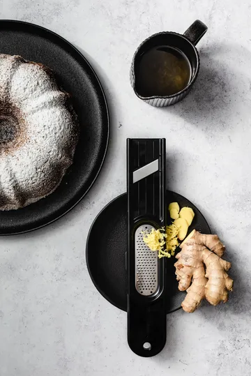 Speciality 3-i-1 ingefära redskap från Microplane är det ultimata verktyget för att enkelt skala, riva och skära ingefära. Den laterala skrapan gör skalning smidig och den skarpa, fotoetsade bladet river ingefäran till en perfekt konsistens. Med den integrerade skärbladet skär du tunna skivor med precision. Detta mångsidiga redskap frigör ingefärsaromer, vilket förstärker smaken i dina maträtter och drycker. Enkelt, effektivt och oumbärligt i varje kök!