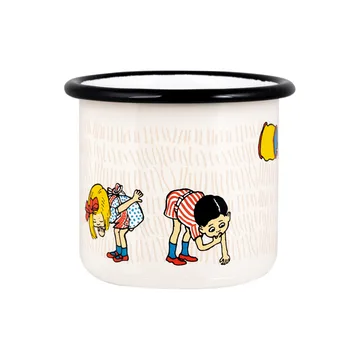 Pippi The Snirkle Hunt emaljmugg 25 cl från finska Muurla är en emaljerad handgjord mugg i stål med handtag och bilder på Pippi Långstrump, hennes apa Herr Nilsson och Tommy och Annika på sakletarjakt. Tack vare materialet är muggen hållbar och lättviktig, vilket tillsammans med designen gör den både funktionell och fin. För varje mugg som säljs skänks 1 Euro till Rädda Barnen i en kampanj som stödjer flickor som har gått igenom olika typer av trauman.