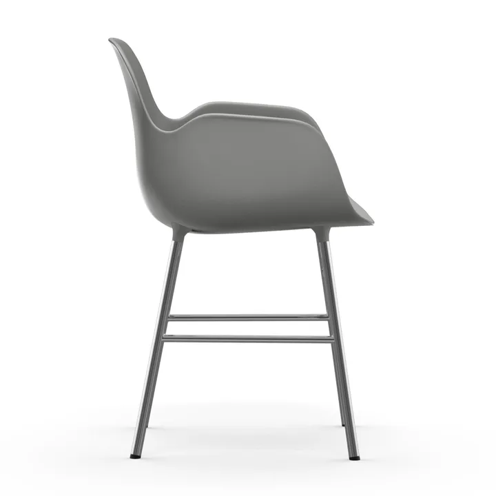 Form karmstol med kromade ben från Normann Copenhagen är framtagen i samarbete med designern Simon Legald. Den har ett minimalistiskt utseende som gör sig utmärkt i hem med skandinavisk stil. De kromade benen bryter av stolens i övrigt mjuka och böljande form och den passar lika bra i matsalen som framför skrivbordet.