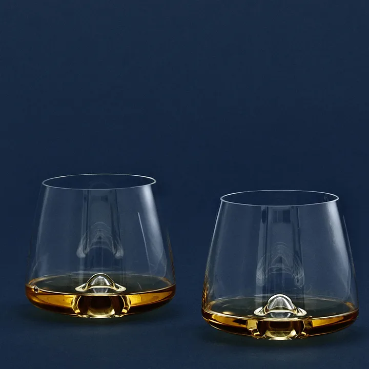 Normann whiskeyglas har fått sin inspiration från stranden och havet där elegans möter funktionalitet på ett modernt sätt. Glasens botten har fått sin runda form för att vara så greppvänlig som möjligt och den lilla bubblan i mitten ska föreställa en isbit som på ett elegant sätt har skapat glasets unikhet!