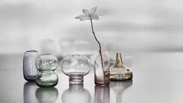 Midsummer minivas Wood Cranesbill från Orrefors är tillverkad i glas och designad av Claesson Koivisto Rune. Inspirerad av midsommarseden att plocka sju sorters blommor, är denna vas perfekt för en eller några få stjälkar. Med sina 100 mm i höjd passar den lika bra att använda på egen hand som i grupp.