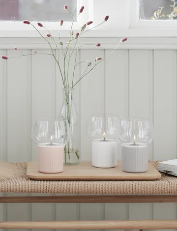 HYGGE hurricane oljelampa 16 cm från RIG-TIG är en ljuslykta tillverkad med botten i keramik och en topp i slittåligt glasborrsilikat. Låt HYGGE sätta en riktigt harmonisk och mysig stämning i ditt hem eller uteplatsen. Varför inte kombinera med de andra oljelamporna i olika färger för en effektfull ljussättning? Oljeljus säljs separat.