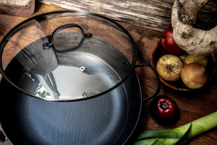 Satake traktörpanna lättviktsgjutjärn keramisk från Satake erbjuder en non-stick yta utan tillsatt PFAS. Med genomtänkta mattsvarta detaljer och en yta som fördelar värmen jämnt, är den perfekt för både kokning och sjudning. Traktörpannan inkluderar ett glaslock med luftningsventil. Diska med varmt vatten och diskmedel, undvik induktionshällens boost-funktion och kalla vätskor i varm panna.