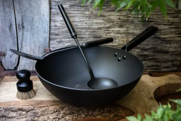 Satake wok set kolstål från Satake är perfekt för din matlagning. Setet innehåller en wok av 2,5 mm spunnet kolstål med, en wokstekspade, en wokslev och en rengöringsborste. Kolstålwoken är förinbränd och redo att användas. Kolstål tål höga temperaturer, men undvik diskmaskin.