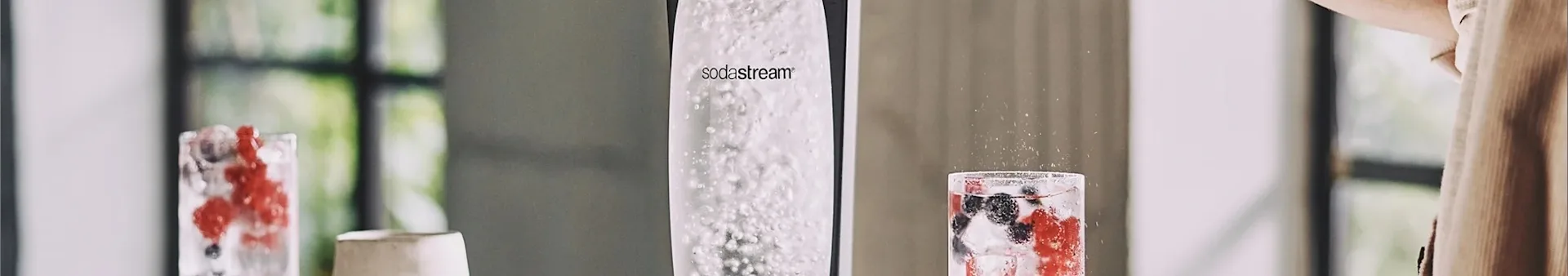 SodaStream är en marknadsledande leverantör av kolsyremaskiner för hemmabruk och erbjuder ett enkelt, roligt och miljövänligt sätt att göra uppfriskande kolsyrat vatten hemma! Genom att tillsätta bubblor till ditt kranvatten med hjälp av kolsyremaskinen får du ditt eget naturella bubbelvatten och du bestämmer själv med hjälp av ett knapptryck hur mycket bubblor du vill ha. Du kan även enkelt smaksätta bubbelvattnet med din egen favoritsmak!