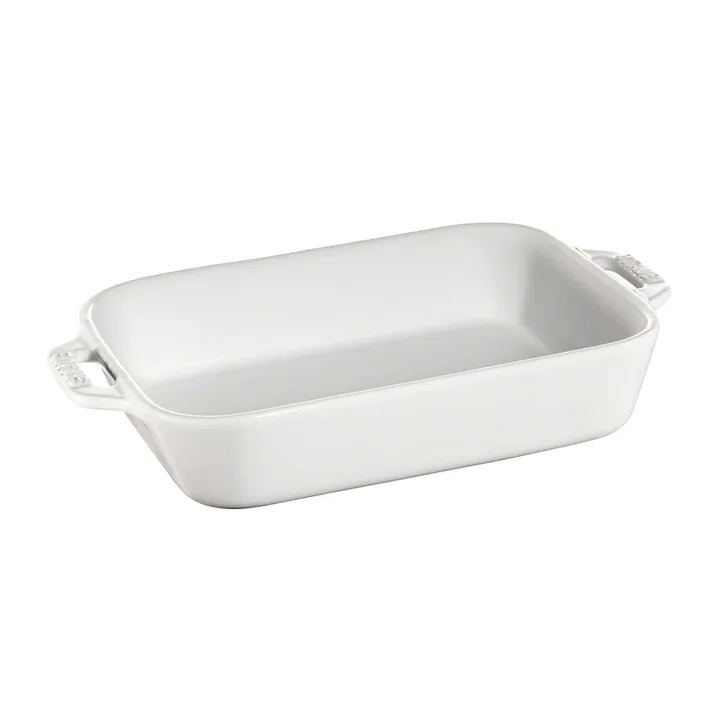 Staub rektangulär ugnsform 20 x 16 cm har en stilren och tidlös design och kommer från franska Staub. Formen är tillverkad i hållbart stengods och har en emaljerad yta för att på ett bra sätt stå emot repor och andra skador. Det gör den till ett perfekt komplement till köket när du vill använda dig av produkter som du kan lita på. Storleken passar utmärkt för allt från gratänger och kötträtter till kladdkakor och pajer.