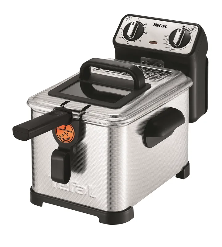Tefal ger dig en innovativ fritös som gör det enkelt att få ett professionellt resultat. Filtra Pro har en väl genomtänkt design som presterar på hög nivå utan att vara svår att använda. Fritösen är utrustad med kallzonteknik och har ett patenterat filtreringsnät som håller din olja ren och filtrerar så att du slipper rester kvar i din maskin. Med sin stora kapacitet på 4 liter olja så kommer du kunna laga upp till 1kg pommes eller 1,3 kg nuggets vilket gör att den passar utmärkt för familjer. Beroende på vad du väljer att fritera så kan du enkelt justera temperaturen från 150°C till 190°C och välja din tillagningstid med den digitala timern. Medan din mat tillagas så kan du övervaka den genom fönstret i locket. Bli ett friteringsproffs med denna fritös! Behållaren är i tåligt rostfritt stål som går att ta ur från fritösen för enklare rengöring. Filtra Pro kan monteras isär helt och alla delar utom värmeblocket tål att diskas i diskmaskin. Filtra Pro är utrustad med ett permanent metallfilter.