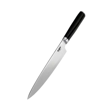 VG10 kockkniv från Wilfa är tillverkad av högkvalitativt rostfritt stål och har ett handtag i pakkaträ för ett bekvämt och balanserat grepp. Denna kniv är en del av VG10-serien och är designad för att ge precision och hållbarhet i köket med extrem kanthållbarhet och mycket god korrosionsbeständighet. Med denna kniv kan du skära det mesta så som grönsaker, frukt, benfritt kött, fisk och ost. Knivbladet är tillverkat av japanskt stål och handtaget väger bra i både höger och vänster hand, dessutom med tryckimpregnerat trä för att motstå att träet spricker i kontakt med vatten.