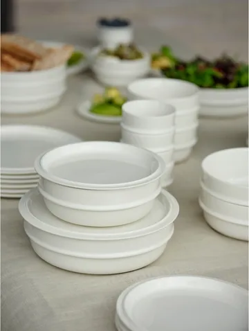Eau Poke/ramenskål 0,6 L från Zone Denmark är tillverkad i vackert offwhite porslin. Denna del av Eau-serien erbjuder enkelhet och funktionalitet, där överflödiga detaljer har skalats bort. Skålen kan staplas för effektiv förvaring och enkel dukning, och kan även kompletteras med en tallrik som lock. Perfekt för charmiga, opretentiösa bufféer eller spontana middagar.